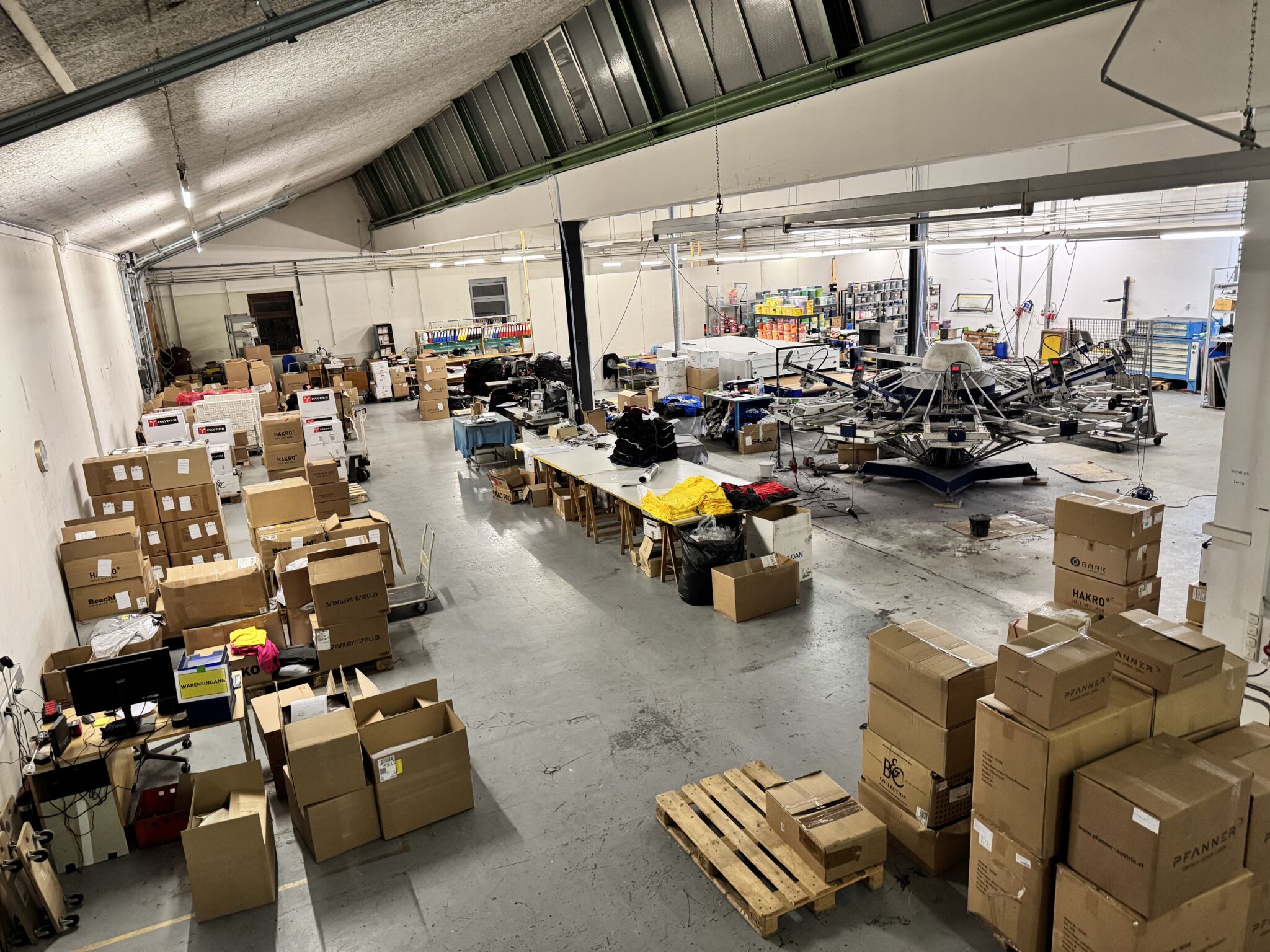 sondern ein engagiertes Team von Fachkräften – von den drei Stickerei-Spezialisten über die Druck-Experten und Lagerlogistiker bis hin